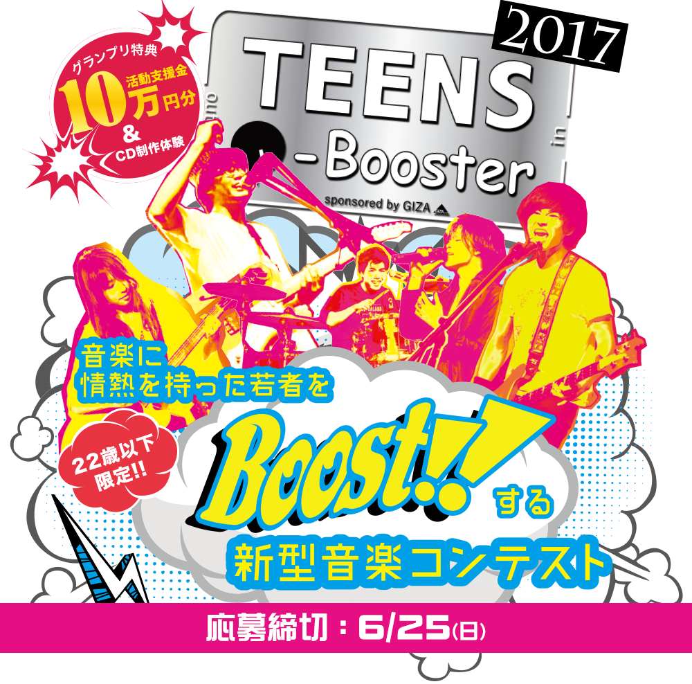 「TeensBooster (ティーンズブースター)」は音楽が好きな若者を支援し、これからの音楽シーンを更に盛り上げていきたい!という想いから企画された音楽コンテストです。